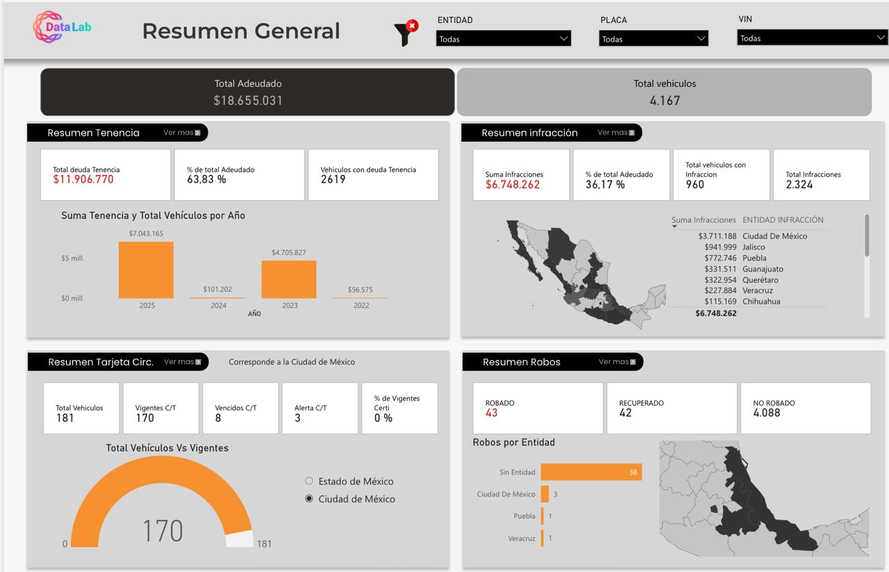 Dashboard en BI con el estatus regulatorio de toda tu flota